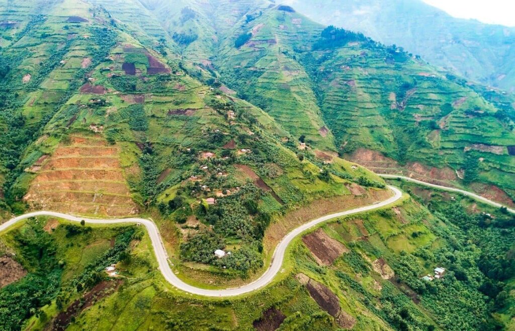 This is an area of gentle relief crossed by several watercourses, south of the Victoria Nile.